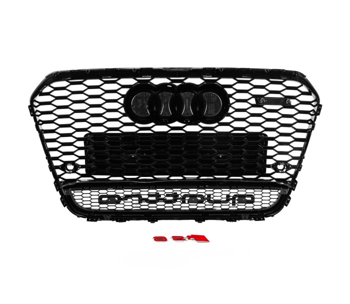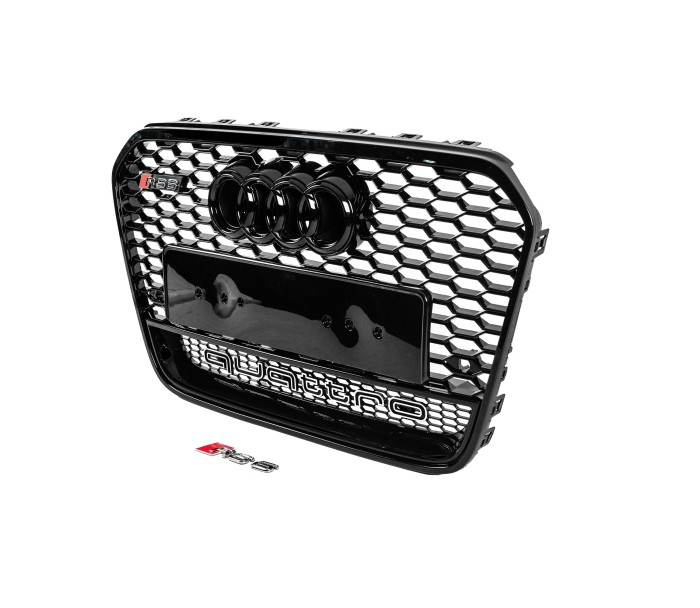 Передня чорна решітка RS-style з написом Quattro (2011-2014) для Ауди A6 C7 рр, Ауди, Ауди A6 C7 2011-2017 рр, Запчастини кузова -> Решітки радіатора -> Обвіси -> Тюнінг решітки, від виробника GT Tuning, країна виробництво Китай, матеріал ABS-пластик, тип установки В штатні місця. Тільки якісні автоаксесуари від прямого імпортера та виробника, з гарантією та доставкою.