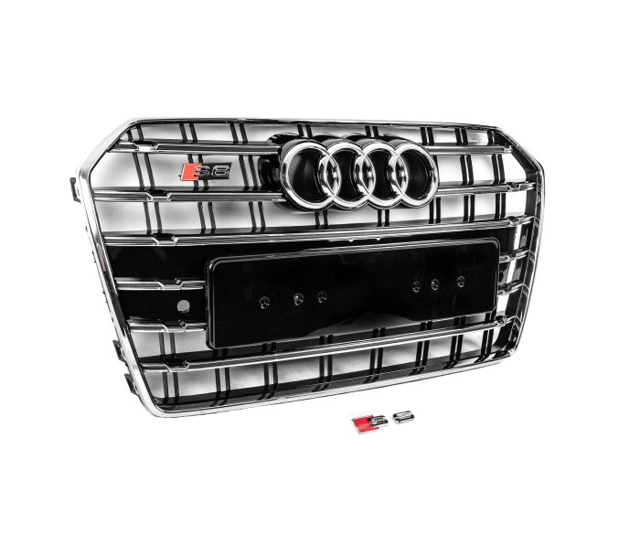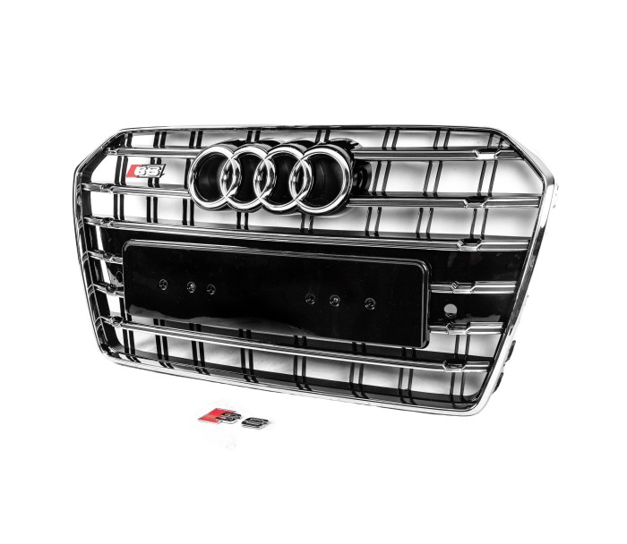 Передня чорна решітка з хром рамкою S-Style (2014-2017) для Ауди A6 C7 рр, Ауди, Ауди A6 C7 2011-2017 рр, Запчастини кузова -> Решітки радіатора -> Обвіси -> Тюнінг решітки, від виробника GT Tuning, країна виробництво Китай, матеріал ABS-пластик, тип установки В штатні місця. Тільки якісні автоаксесуари від прямого імпортера та виробника, з гарантією та доставкою.