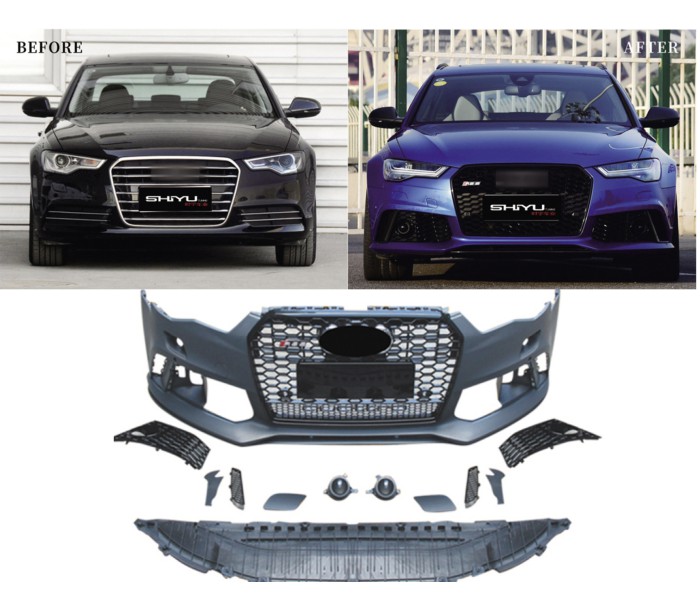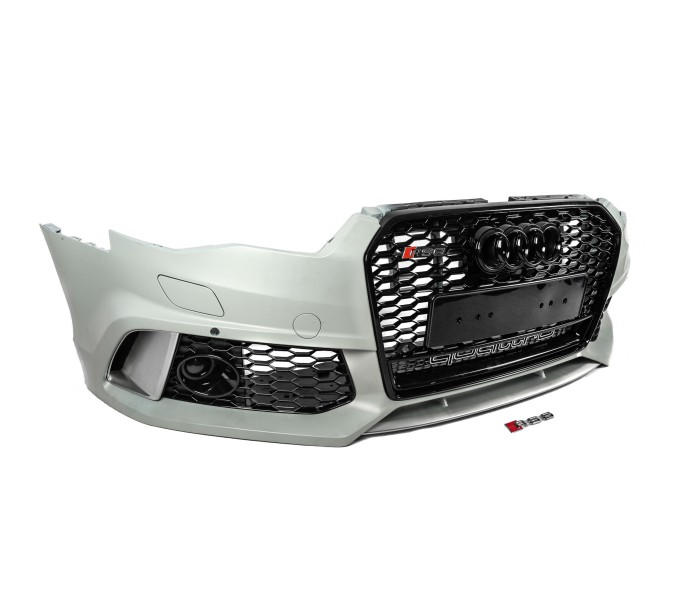 Передній бампер з чорною решіткою RS6-Style (2014–2017) для Ауди A6 C7 2011-2017 рр, Ауди, Ауди A6 C7 2011-2017 рр, Запчастини кузова -> Бампера -> Обвіси -> Передні бампера, від виробника GT Tuning, країна виробництво Китай, матеріал Пластик, тип установки В штатні місця. Тільки якісні автоаксесуари від прямого імпортера та виробника, з гарантією та доставкою.