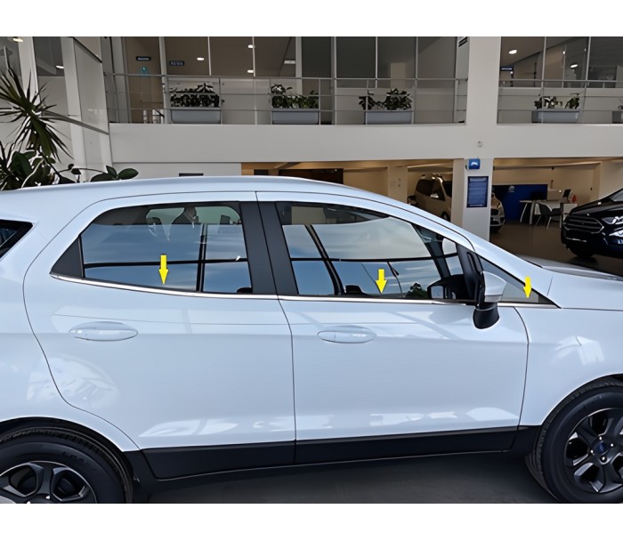 Окантовка скла (6 шт, нерж) для Ford Ecosport 2013-2022 рр, Ford, Ford Ecosport 2013-2022 рр, Хром накладки -> Накладки на двері -> Накладки на кузов -> Хром молдинги, від виробника Omsa Line, країна виробництво Туреччина, матеріал Нержавіюча сталь, тип установки Самоклейка. Тільки якісні автоаксесуари від прямого імпортера та виробника, з гарантією та доставкою.