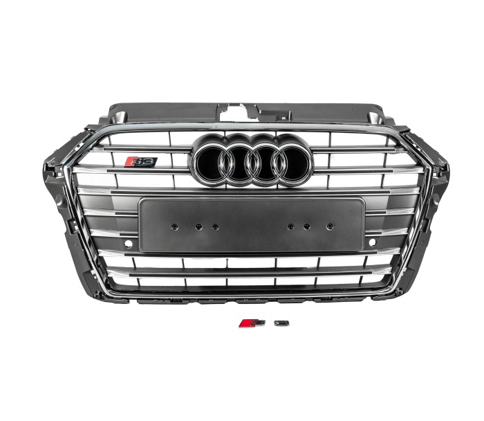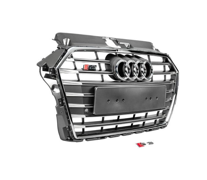 Передня решітка S-style (2016-2020, сіра з хромом) для Ауди A3 рр, Ауди, Ауди A3 2012-2020 рр, Запчастини кузова -> Решітки радіатора -> Обвіси -> Тюнінг решітки, від виробника GT Tuning, країна виробництво Китай, матеріал ABS-пластик, тип установки В штатні місця. Тільки якісні автоаксесуари від прямого імпортера та виробника, з гарантією та доставкою.