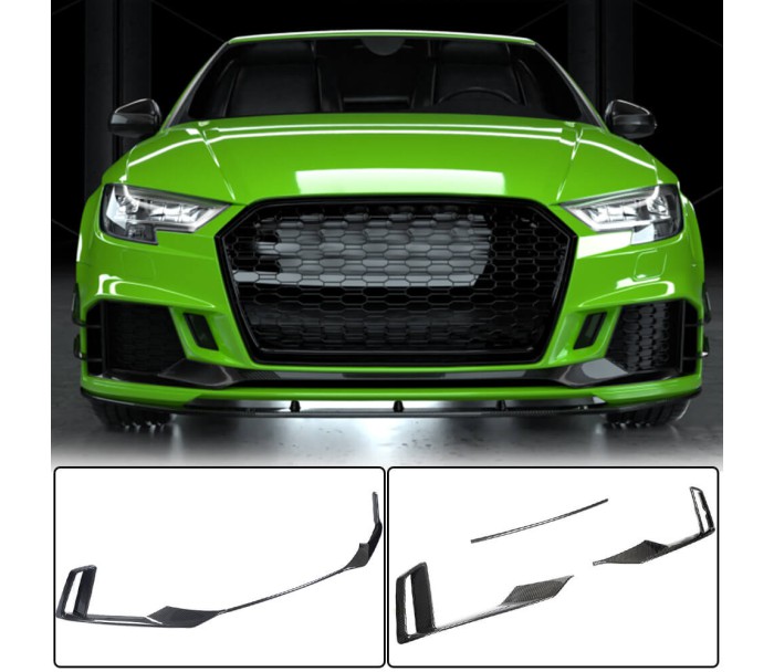 Накладки на передній бампер V1 (для RS3 SD 2017-2020, Карбон) для Ауди A3 рр, Ауди, Ауди A3 2012-2020 рр, Обвіси -> Ліп-спойлери переднього бампера -> Карбонові накладки, від виробника DDCarbon, країна виробництво Тайвань, матеріал Натуральний карбон. Тільки якісні автоаксесуари від прямого імпортера та виробника, з гарантією та доставкою.