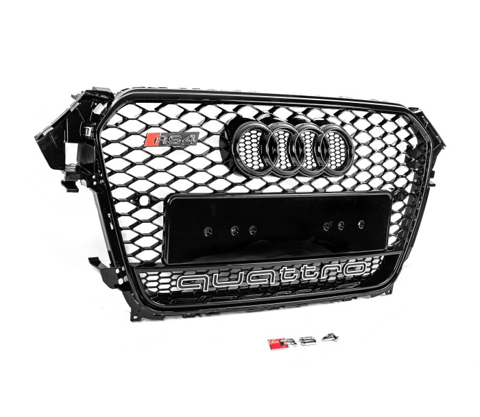 Передня чорна решітка RS-style з написом Quattro (2012-2015) для Ауди A4 B8 рр, Ауди, Ауди A4 B8 2007-2015 рр, Запчастини кузова -> Решітки радіатора -> Обвіси -> Тюнінг решітки, від виробника GT Tuning, країна виробництво Китай, матеріал ABS-пластик, тип установки В штатні місця. Тільки якісні автоаксесуари від прямого імпортера та виробника, з гарантією та доставкою.