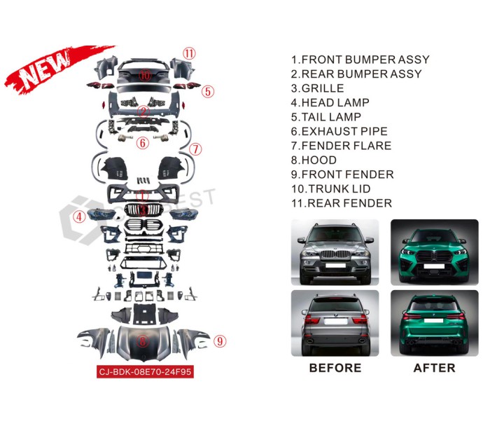 Комплект рестайлінгу в X5M F95 2024 р. для BMW X5 E70 2007-2013 рр, BMW, BMW X5 E70 2007-2013 рр, Обвіси -> Комплект обвісів (повні бампера) -> Комплекти рестайлінгу (в нову модель), від виробника GBT, країна виробництво Китай, матеріал Різні матеріали, тип установки В штатні місця. Тільки якісні автоаксесуари від прямого імпортера та виробника, з гарантією та доставкою.