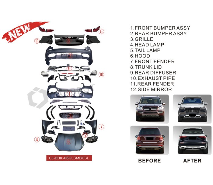 Комплект рестайлінгу в GLS X167 Maybach для Mercedes GL сlass X164 2006-2012 рр, Mercedes-Benz, Mercedes GL сlass X164 2006-2012 рр, Обвіси -> Комплект обвісів (повні бампера) -> Комплекти рестайлінгу (в нову модель), від виробника GBT, країна виробництво Китай, матеріал Алюміній + пластик, тип установки В штатні місця. Тільки якісні автоаксесуари від прямого імпортера та виробника, з гарантією та доставкою.