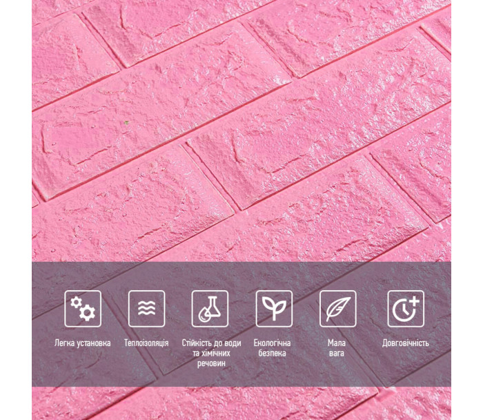 3D панелі самоклеючі – декоративне покриття для стін, виконане з легкого та міцного матеріалу – пористого поліпропілену (ППП). Основна особливість – рельєфний малюнок у вигляді цегли у широкому різноманітті кольорів та наявність клейового шару, що дозволяє встановити панелі без необхідності застосування додаткових матеріалів.