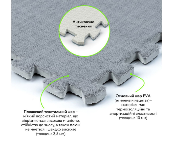 Товщина пазла: основний шар – 10 мм + ворс – 3,5 мм