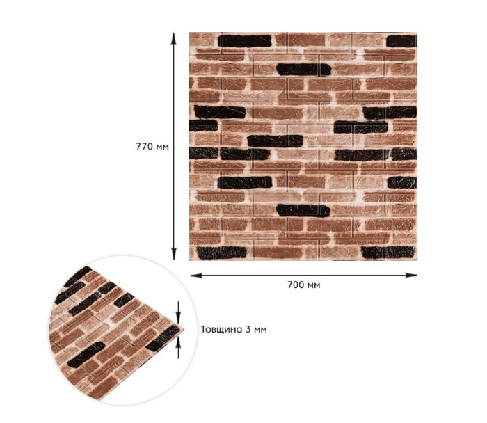 3D панелі самоклеючі – декоративне покриття для стін, виконане з легкого та міцного матеріалу – пористого поліпропілену (ППП). Основна особливість – рельєфний малюнок у вигляді цегли у широкому різноманітті кольорів та наявність клейового шару, що дозволяє встановити панелі без необхідності застосування додаткових матеріалів.