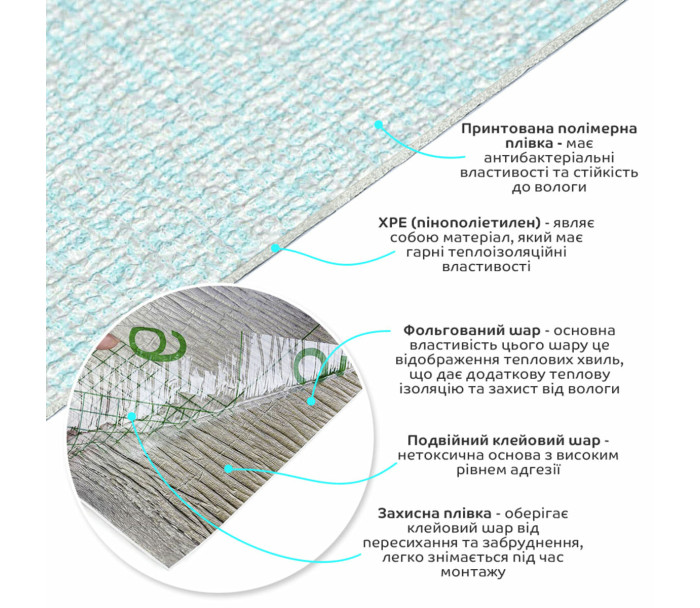 3. Теплоізоляція: Спінений ХРЕ і фольгований шар забезпечують хорошу теплоізоляцію, що допомагає підтримувати комфортну температуру в приміщенні.