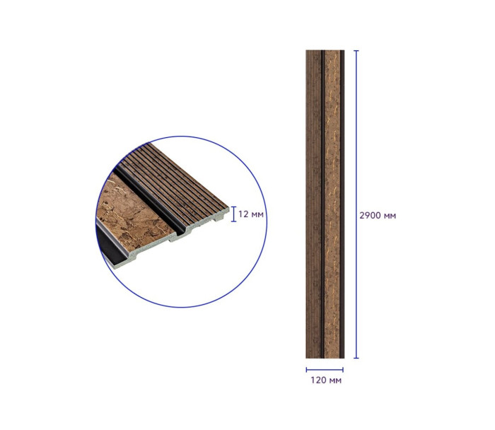 • Площа покриття: 120х2900х12 мм – 0,34 м², кількість на 1 м² – 3 одиниці.