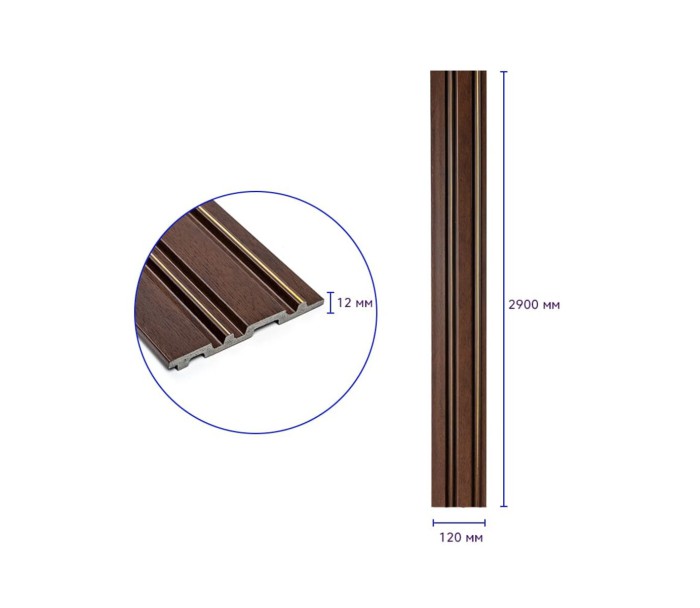 Рейка декоративна PS 2900х120х12мм Темний горіх із золотом SW-00002131-
