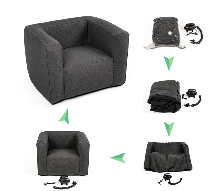 10. Швидка збірка. Надувні меблі швидко надуваються за допомогою насосу, що входить у комплект, і готові до використання всього за кілька хвилин. Це особливо зручно, коли потрібно швидко змінити інтер'єр або створити комфортне місце для відпочинку.