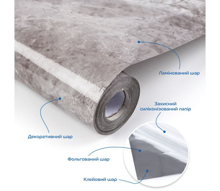 • Декоративний шар. Під ламінацією знаходиться шар з декоративним друком, на якому зображено малюнок або текстура, що імітують дерево, мармур, плитку чи інші матеріали. Цей шар надає плівці візуальну привабливість, що підходить для різноманітних інтер’єрних рішень.