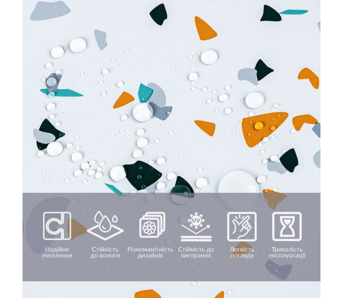Вологостійкість: завдяки ламінації, плівка має підвищену стійкість до вологи, що робить її ідеальною для використання у приміщеннях з підвищеною вологістю, таких як кухня чи ванна кімната.