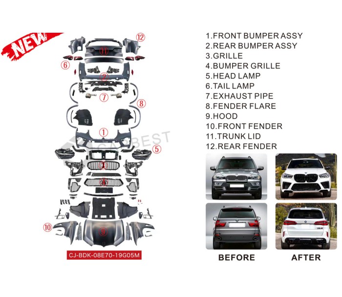 Комплект рестайлінгу в X5M F95 2019 р. для BMW X5 E70 2007-2013 рр, BMW, BMW X5 E70 2007-2013 рр, Обвіси -> Комплект обвісів (повні бампера) -> Комплекти рестайлінгу (в нову модель), від виробника GBT, країна виробництво Китай, матеріал Різні матеріали, тип установки В штатні місця. Тільки якісні автоаксесуари від прямого імпортера та виробника, з гарантією та доставкою.