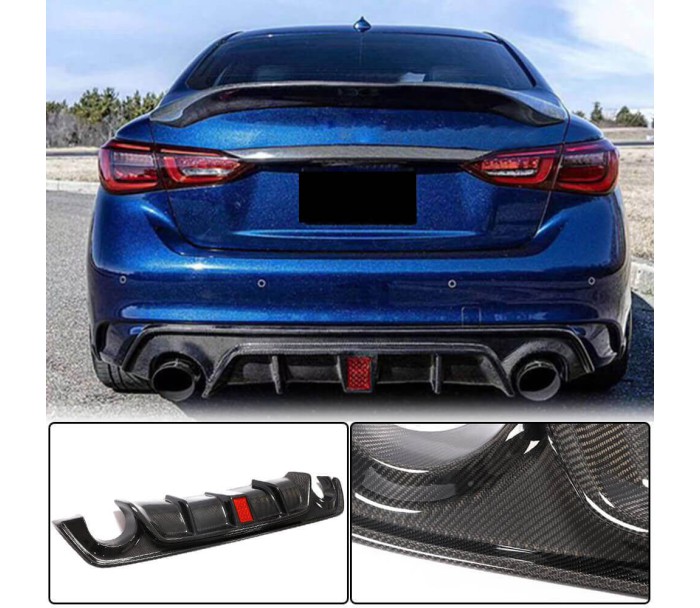 Дифузор заднього бампера V3 (для Q50 Base/Sport 2018-2023, Карбон) для Infiniti Q50/Q60 рр, Infiniti, Infiniti Q50/Q60 2013-2024 рр, Обвіси -> Задні дифузори -> Карбонові накладки, від виробника DDCarbon, країна виробництво Тайвань, матеріал Натуральний карбон. Тільки якісні автоаксесуари від прямого імпортера та виробника, з гарантією та доставкою.