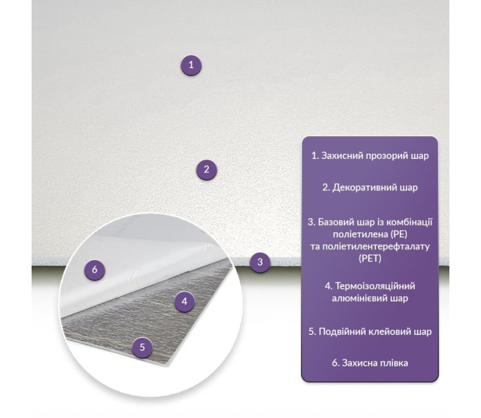 • Базовий шар з комбинації поліетилена (PE) і поліетилентерефталату (PET)