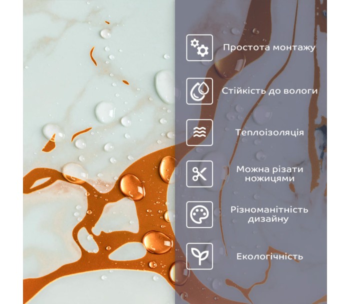 • 2. Стійкість до вологи: матеріал стійкий до впливу вологи та пари, а також до появи плісняви, що робить його придатним для використання у приміщеннях з високою вологістю, таких як ванни та кухні. Плитка підходить для створення фартуха кухні, можна клеїти біля плити на відстані не менше ніж 20-25 см;