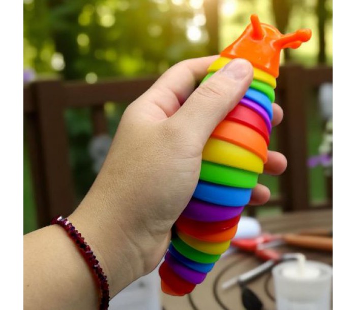 Кольорова іграшка для зняття стресу, що нагадує равлика або гусеницю. "Равлик" це новий цікавий спосіб позбутися тривоги та розчарування. Іграшка виготовлена з дуже гнучких деталей і приємного на дотик пластику, що забезпечує миттєве зняття стресу. Її також можна використовувати для навчання дітей координації рухів.