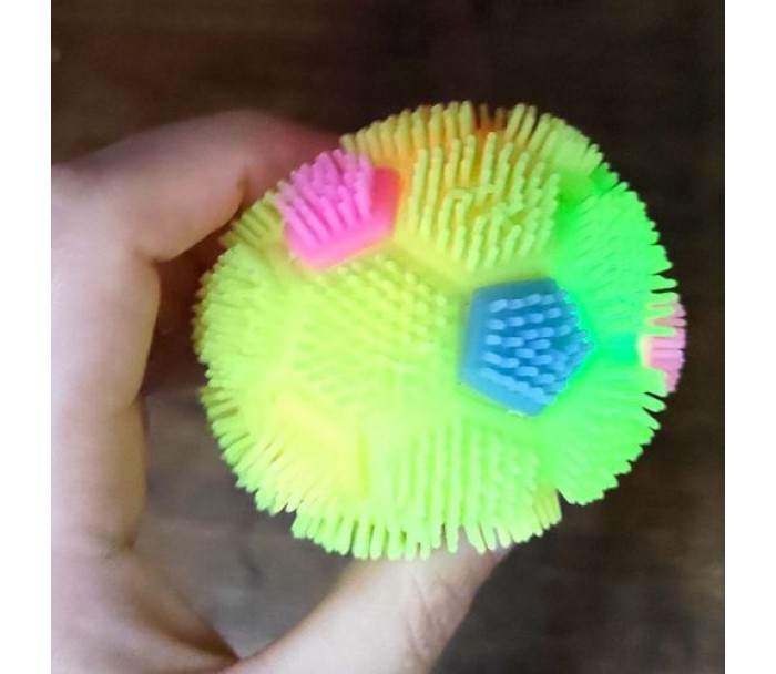 Кумедна світяшка у вигляді футбольного мʼячу. Іграшка порожня всередині й наповнена повітрям по типу надувної кулі. Всередині іграшки також є пластикова світяшка, що активується при ударі об поверхню. Виконано з якісних та безпечних матеріалів. Для дітей старше 3-х років. Якщо іграшка трошки здута, можна накачати її за допомогою звичайного медичного шприца з голкою.