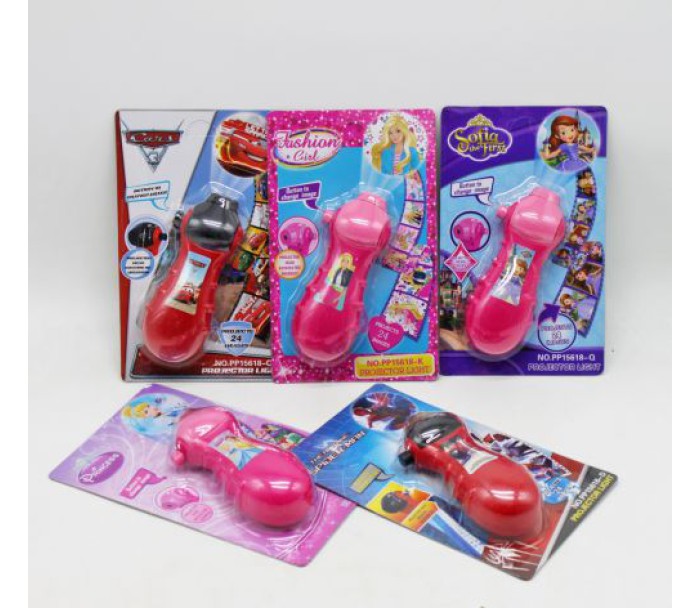Пластиковий проектор, який може проектувати на стіну 24 картинки. При натисканні на кнопку спалахує ліхтар, який транслює зображення на поверхню. Верхня частина проектора обертається на 90 градусів. Працює від батарейок.