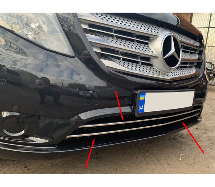 Накладки на решітку бампера (2 шт, нерж) Vito вантажний (чорний хром) для Mercedes Vito/V-class W447 2014- рр, Mercedes-Benz, Mercedes Vito/V-class W447 2014- рр, Хром накладки -> Захисні хром накладки на бампер -> Накладки на решітку, від виробника Omsa Line, країна виробництво Туреччина, матеріал Нержавіюча сталь, тип установки Самоклейка. Тільки якісні автоаксесуари від прямого імпортера та виробника, з гарантією та доставкою.