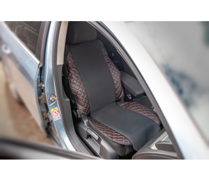 Накидка на сидіння ECO і тканина (1 шт, Чорний з червоною ниткою-2026 тканина), Універсальні товари, Чохли -> Накидки на сидіння, від виробника Digital Designs, країна виробництво Україна, матеріал Шкірозамінник, тип установки Гачки. Тільки якісні автоаксесуари від прямого імпортера та виробника, з гарантією та доставкою.