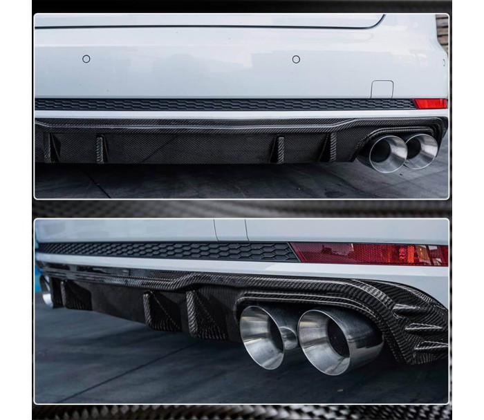 Дифузор заднього бампера V2 (для S-Line SD 2015-2019, Карбон) для Ауди A4 B9 рр, Ауди, Ауди A4 B9 2015-2024 рр, Обвіси -> Задні дифузори -> Карбонові накладки, від виробника DDCarbon, країна виробництво Тайвань, матеріал Натуральний карбон. Тільки якісні автоаксесуари від прямого імпортера та виробника, з гарантією та доставкою.