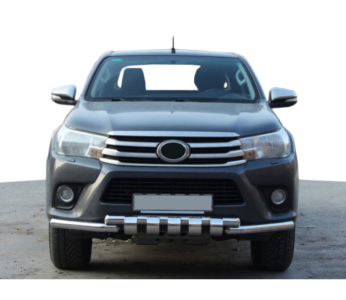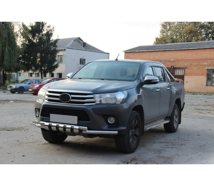 Передній захист F3-34 (нерж.) для Toyota Hilux 2015- рр, Toyota, Toyota Hilux 2015- рр, Кенгурятники і підніжки -> Передні захисти, від виробника CAN, країна виробництво Туреччина, матеріал Нержавіюча сталь, тип установки В штатні місця. Тільки якісні автоаксесуари від прямого імпортера та виробника, з гарантією та доставкою.