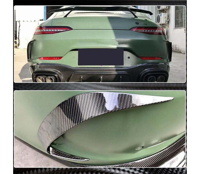 Накладки на задній бампер V2 (для GT63 2018-2022, Карбон) для Mercedes AMG GT 4 X290 2018- рр, Mercedes-Benz, Mercedes AMG GT 4 X290 2018- рр, Обвіси -> Задні дифузори -> Карбонові накладки, від виробника DDCarbon, країна виробництво Тайвань, матеріал Натуральний карбон. Тільки якісні автоаксесуари від прямого імпортера та виробника, з гарантією та доставкою.