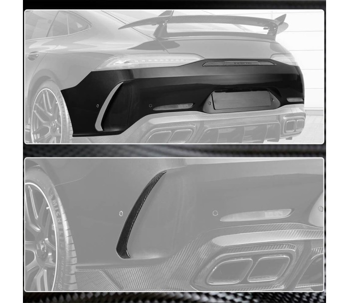 Накладки на задній бампер V1 (для GT63 2018-2022, Карбон) для Mercedes AMG GT 4 X290 2018- рр, Mercedes-Benz, Mercedes AMG GT 4 X290 2018- рр, Обвіси -> Задні дифузори -> Карбонові накладки, від виробника DDCarbon, країна виробництво Тайвань, матеріал Натуральний карбон. Тільки якісні автоаксесуари від прямого імпортера та виробника, з гарантією та доставкою.