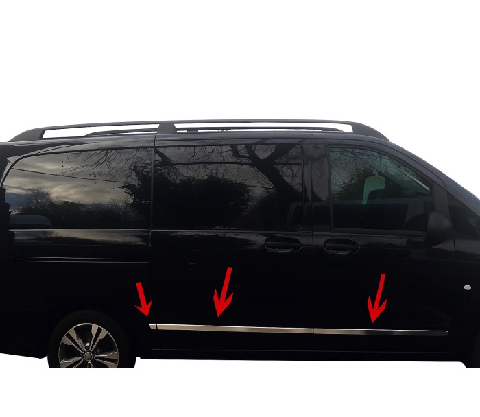 Молдинг дверний (6 частин, нержавійка) Довга, 2 бокові двері для Mercedes Vito/V-class W447 2014- рр, Mercedes-Benz, Mercedes Vito/V-class W447 2014- рр, Хром накладки -> Накладки на двері -> Накладки на кузов -> Хром молдинги, від виробника Omsa Line, країна виробництво Туреччина, матеріал Нержавіюча сталь, тип установки Самоклейка. Тільки якісні автоаксесуари від прямого імпортера та виробника, з гарантією та доставкою.