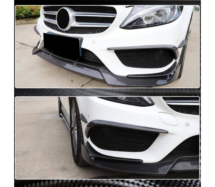 Накладки на передній бампер (для C43 AMG 2015-2019, Карбон) для Mercedes C-сlass W205 рр, Mercedes-Benz, Mercedes C-сlass W205 2014-2021 рр, Обвіси -> Карбонові накладки -> Ліп-спойлери переднього бампера, від виробника DDCarbon, країна виробництво Тайвань, матеріал Натуральний карбон. Тільки якісні автоаксесуари від прямого імпортера та виробника, з гарантією та доставкою.