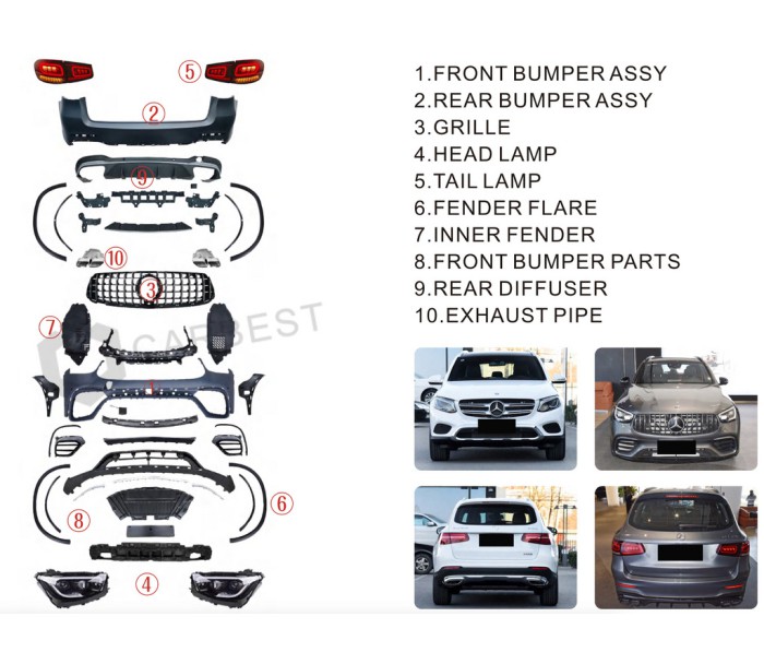Комплект рестайлінгу в GLC63 2022 року для Mercedes GLC X253 2015-2022 рр, Mercedes-Benz, Mercedes GLC X253 2015-2022 рр, Обвіси -> Комплект обвісів (повні бампера) -> Комплекти рестайлінгу (в нову модель), від виробника GBT, країна виробництво Китай. Тільки якісні автоаксесуари від прямого імпортера та виробника, з гарантією та доставкою.