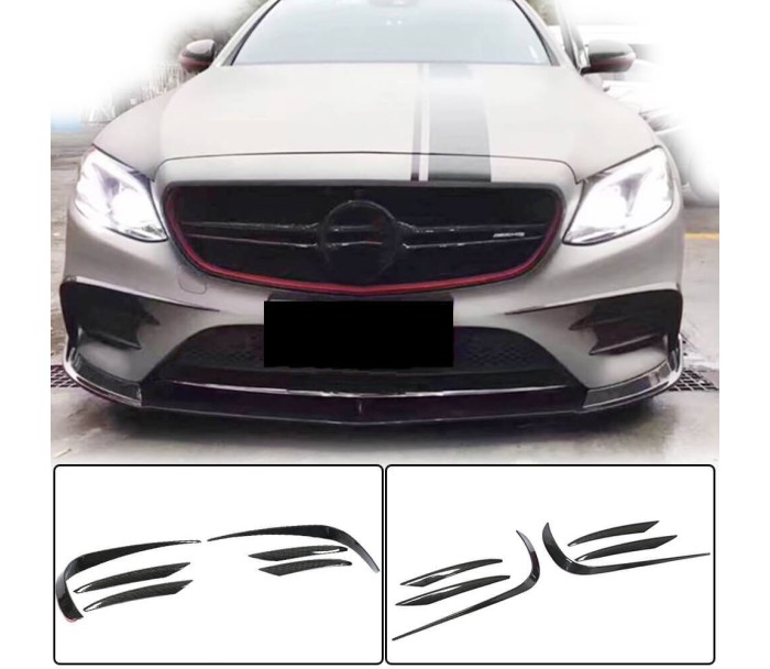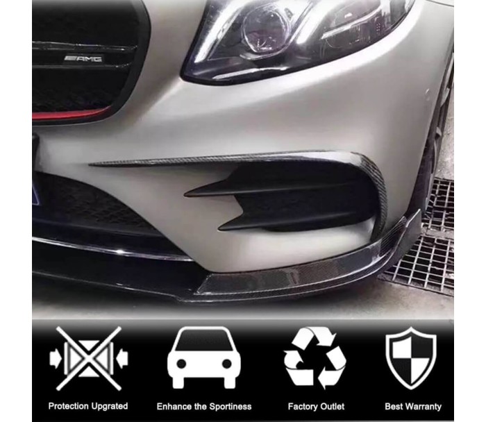 Накладки на передній бампер V1 (для E43 AMG 2016-2019, Карбон) для Mercedes E-сlass W213 рр, Mercedes-Benz, Mercedes E-сlass W213 2016-2023 рр, Обвіси -> Карбонові накладки -> Ліп-спойлери переднього бампера, від виробника DDCarbon, країна виробництво Тайвань, матеріал Натуральний карбон. Тільки якісні автоаксесуари від прямого імпортера та виробника, з гарантією та доставкою.