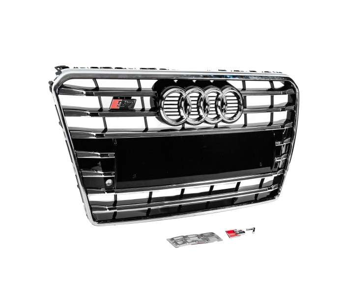 Передня решітка S-Style (2010-2014, чорна з хромом) для Ауди A7 рр, Ауди, Ауди A7 2010-2018 рр, Запчастини кузова -> Решітки радіатора -> Обвіси -> Тюнінг решітки, від виробника GT Tuning, країна виробництво Китай, матеріал ABS-пластик, тип установки В штатні місця. Тільки якісні автоаксесуари від прямого імпортера та виробника, з гарантією та доставкою.