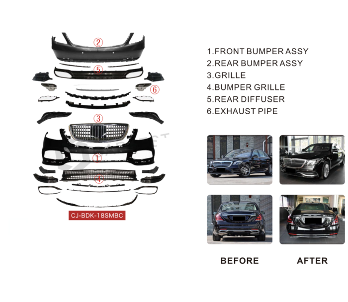Комплект обвісів на Maybach (2018-2022, без оптики) для Mercedes S-сlass W222 рр, Mercedes-Benz, Mercedes S-сlass W222 2013-2022 рр, Обвіси -> Комплект обвісів (повні бампера), від виробника GBT, країна виробництво Китай, матеріал ABS-пластик, тип установки В штатні місця. Тільки якісні автоаксесуари від прямого імпортера та виробника, з гарантією та доставкою.