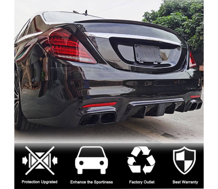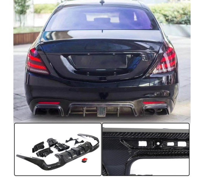 Дифузор заднього бампера з насадками (для S63/S65 AMG 2018-2021, Карбон) для Mercedes S-сlass W222 рр, Mercedes-Benz, Mercedes S-сlass W222 2013-2022 рр, Обвіси -> Карбонові накладки -> Задні дифузори, від виробника DDCarbon, країна виробництво Тайвань, матеріал Натуральний карбон. Тільки якісні автоаксесуари від прямого імпортера та виробника, з гарантією та доставкою.