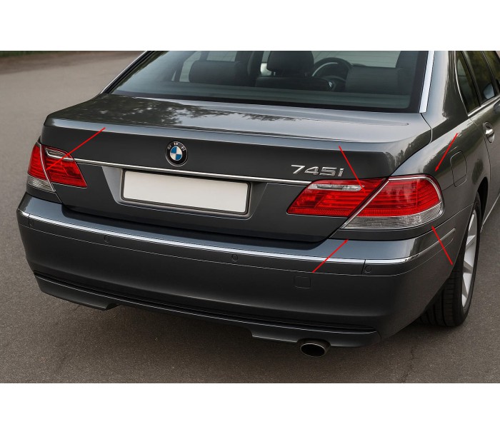 Накладки на стопи (2 шт., ABS) для BMW 7 серія E65/66 2001-2008 рр, BMW, BMW 7 серія E65/66 2001-2008 рр, Хром накладки -> Накладки на ліхтарі, від виробника Carmos, країна виробництво Туреччина, матеріал ABS-пластик, тип установки Самоклейка. Тільки якісні автоаксесуари від прямого імпортера та виробника, з гарантією та доставкою.