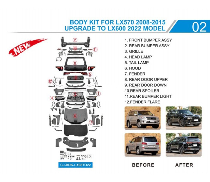 Комплект рестайлінгу на LX600 для Lexus LX570/450d 2008-2022 рр, Lexus, Lexus LX570/450d 2008-2022 рр, Обвіси -> Комплект обвісів (повні бампера) -> Комплекти рестайлінгу (в нову модель), від виробника GBT, країна виробництво Китай, матеріал Різні матеріали, тип установки В штатні місця. Тільки якісні автоаксесуари від прямого імпортера та виробника, з гарантією та доставкою.
