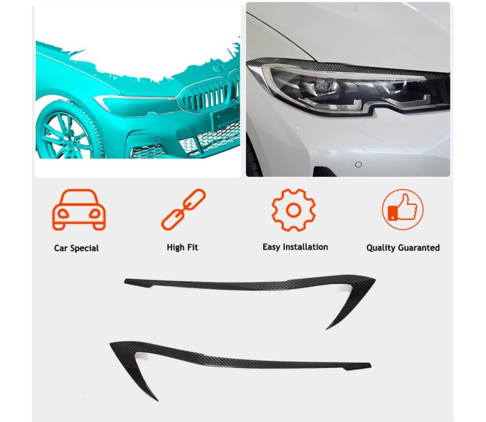 Вії на фари (2018-2022, Карбон) для BMW 3 серія G20/G21 2018- рр, BMW, BMW 3 серія G20/G21 2018- рр, Обвіси -> Війки на фари -> Карбонові накладки, від виробника DDCarbon, країна виробництво Тайвань, матеріал Натуральний карбон. Тільки якісні автоаксесуари від прямого імпортера та виробника, з гарантією та доставкою.