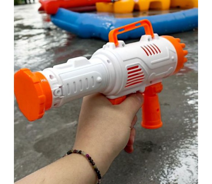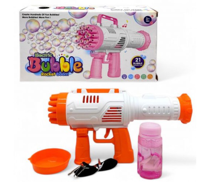 Базука-бульбашкомет— яскрава та захоплива іграшка для дітей і дорослих! Просто занурте іграшку в мильний розчин, натисніть на курок — і з 21 отвору вирвуться десятки веселих бульбашок. Оснащена підсвіткою для ще більшої видовищності, особливо у темряві. Працює від 3 батарейок типу AA (не входять у комплект).