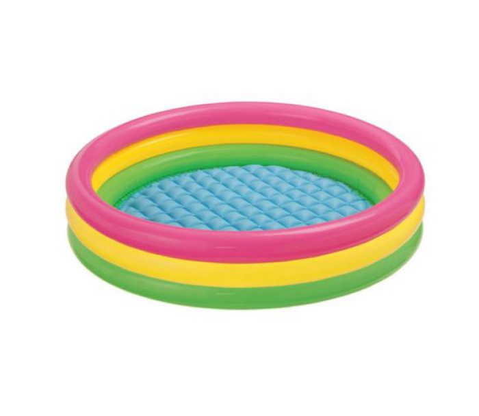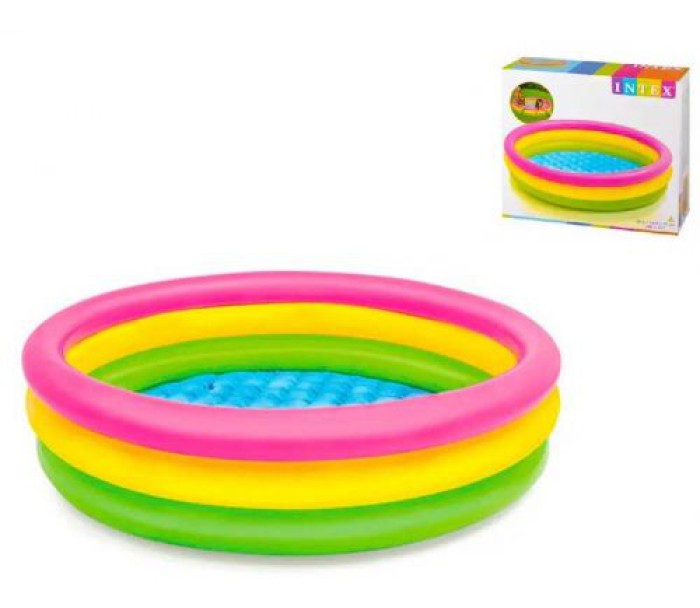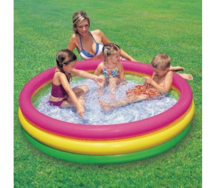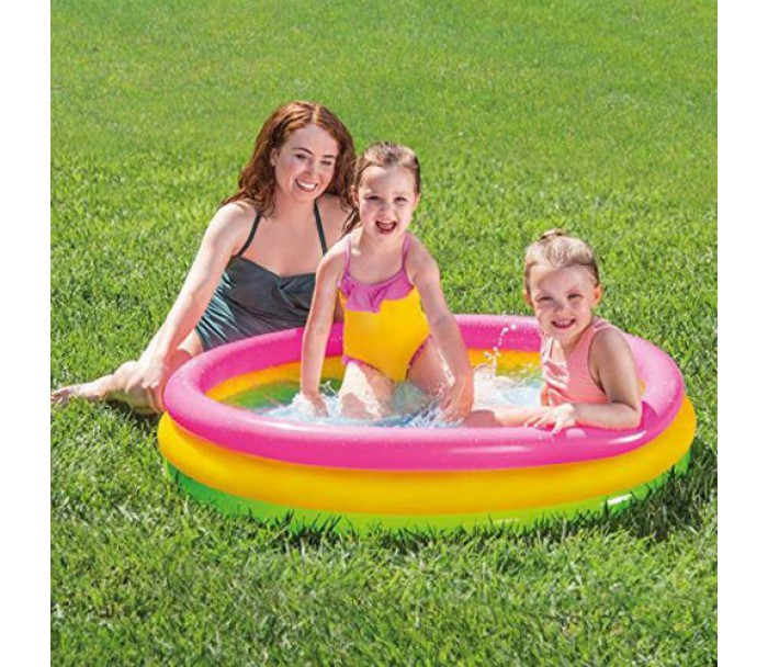 Яскравий і різнобарвний басейн для дітей, що складається з трьох надувних кілець, призначений для самостійної гри малюків від 3 років. Надувне дно забезпечує повну безпеку дитини. Як усі басейни, його можна використовувати як ігровий центр, просто наповнивши різнокольоровими кульками. Матеріал не викликає алергії. Ремкомплект додається.