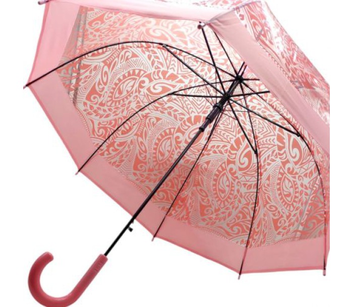 Парасолька напівавтомат, поглиблений купол, d=80 см, довжина: 81 см, 8 спиць, тростина, (РОЖЕВА)