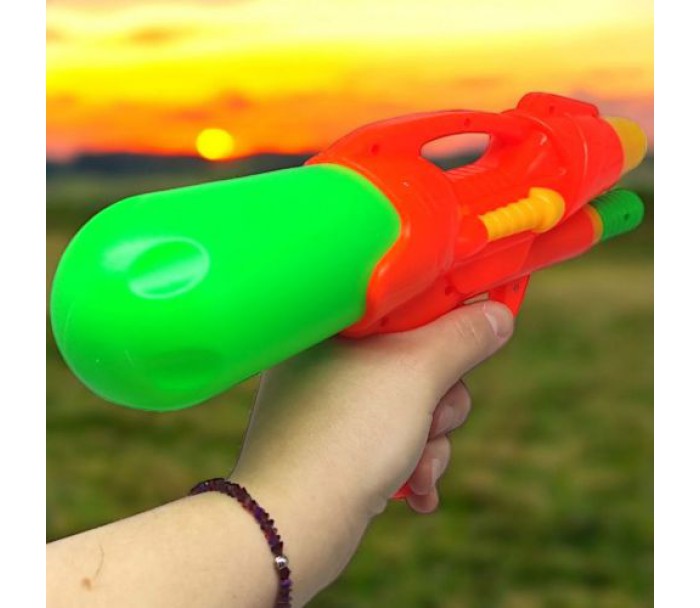 Водяна зброя. Вода заливається в спеціальний резервуар, який кріпиться до пістолета. З накачуванням.