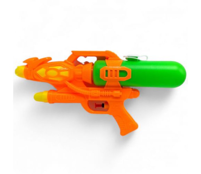 Водяна зброя, щоб намочити кожного хто стане на твоєму шляху! - але краще не попадати в обличчя. Оформлене в зелених та помаранчевих кольорах. Має затичку, щоб зручно набирати воду. Розмір - 41 см. Виготовлений з комбінованих матеріалів. Рекомендовано для діток старше 3-х років.