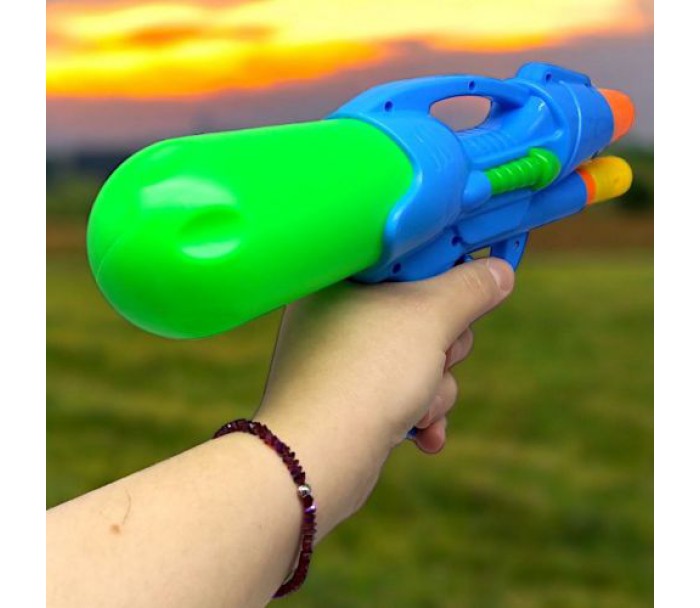 Водяна зброя. Вода заливається в спеціальний резервуар, який кріпиться до пістолета. З накачуванням.