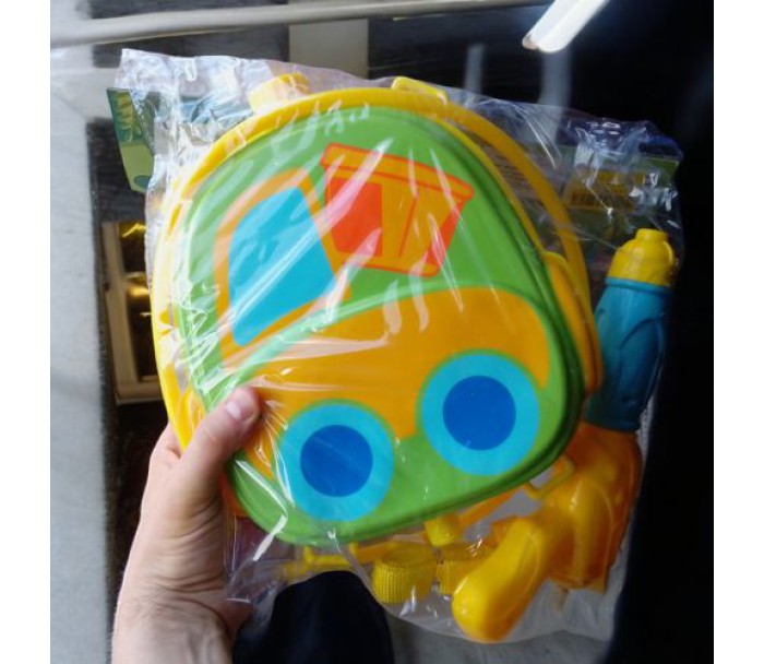 Дитячий набір для стрільби з водяного пістолета-насоса з балоном. Балон виконаний у вигляді будівельної машини. За допомогою лямок, які є в комплекті, його можна носити як рюкзачок. У комплекті є: водний пістолет, балон, лямки та кріплення для трубки.