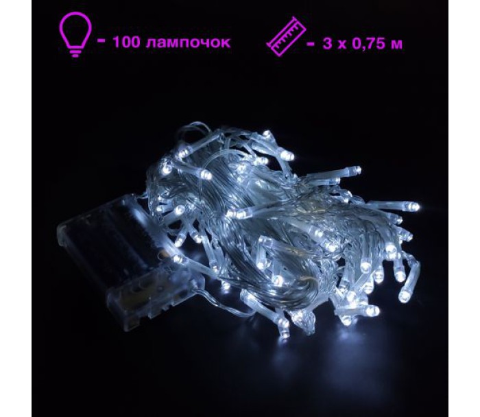 Світлодіодна гірлянда-штора буде чудовою прикрасою у новорічні свята та створить неповторну атмосферу. Лампочки світять білим світлом, є 2 режими свічення (статичний і миготіння). Розмір – 300 х 75 см. Працює від 3-х батарейок АА (немає в комплекті).