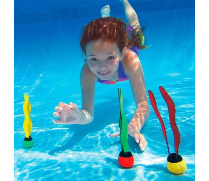 Набір трьох мʼячиків з пелюстками для підводних ігор — ідеальний аксесуар для навчання пірнанню та плаванню. Завдяки обтяжувачу кульки опускаються і залишаються на дні, а легкі пелюстки роблять їх помітними під водою. Іграшки розвивають координацію, спритність та впевненість у воді, перетворюючи тренування на захоплюючу гру.